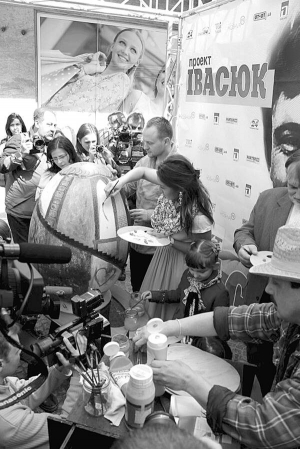 — Я така схвильована, що боюся навіть провести дві лінії на цій писанці, — сестра композитора 62-річна Галина Івасюк бере до рук пензля. — Це така красива акція, пов'язана з Володею і Великоднем. Хотіла намалювати жар-птицю, що летить. А також серце — як знак любові до львів'ян, до свого народу, до всіх.