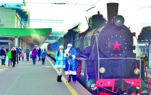 На залізничному вокзалі столиці Дід Мороз і Снігуронька зустрічають охочих покататися на ретро-поїзді. Курсуватиме до 14 січня. Вирушає з першого перону станції Київ-Пасажирський об 11.10 та 13.48. Складається з паровозу 1952 року випуску і трьох сучасних вагонів. Їздить 2 год. навколо столиці. У вагонах триває розважальна новорічна програма. Для дітей до 14 років проїзд — безкоштовний. Дорослим квиток обійдеться у 51 грн. Придбати можна у касах Центрального вокзалу.