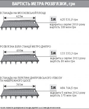 361-метрову розв'язку побудували за півтора року, витратили 175 млн грн. Ходять чутки, її звели, аби скоротити шлях урядовцям і депутатам від елітного поселення Конча-Заспа до Кабміну й Верховної Ради. Від естакади, якщо немає заторів, можна за кілька хвилин доїхати до вул. Грушевського, на якій розташовані уряд і парламент.