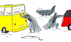 Найдивніше, що п'ять днів не ходили трамваї. У трамвайних депо завжди був спеціальний снігоприбиральний склад. Сто років трамваї не ставали. Скоріше коні не підуть, а трамвай поїде.