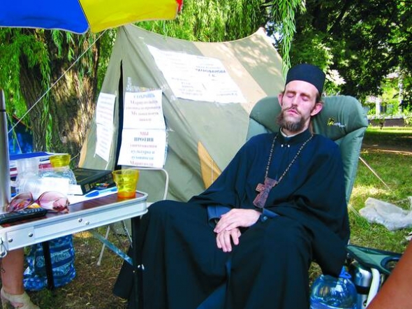 — Полежу під крапельницями і повернуся у свій похідний храм, — каже. — Хоча Олександр Грєшніков з міськвиконкому пригрозив ліквідувати нашу общину, якщо продовжу причащати та сповідувати під стінами мерії. Якщо нічого не допоможе, я готовий розіпнути себе там. Хай міжнародна громадськість побачить, що відбувається в цьому місті.