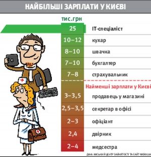 — Роботодавці Києва роблять ставку на молодь без досвіду роботи. Навчають їх, бо вважають, що це перспективніше ніж брати досвідчених спеціалістів, яким за 40, — каже 44-річна Тетяна Пашкіна, столичний експерт із працевлаштування. — Молоді пропонують роботу менеджерами з продажів, офіціантами й програмістами. Зарплата стартує від 3 тисяч гривень.