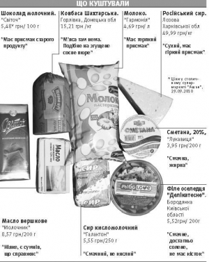 Їду в "Ашан" на столичній Петрівці. Цей супермаркет вважають найвигіднішим для закупок. Деякі товари можна знайти на гривню-дві дешевше, ніж у інших київських магазинах. Вибираю там найдешевші продукти. У списку покупок: сир, сметана, молоко, масло, сир твердий, ковбаса, оселедець у коробці, шоколад.