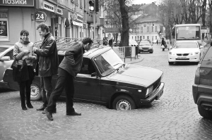 11 квітня о 19.05 на центральній вулиці Князя Романа у Львові провалилися темно-зелені "жигулі". Під авто утворилася яма діаметром понад метр і понад два метри завглибшки.