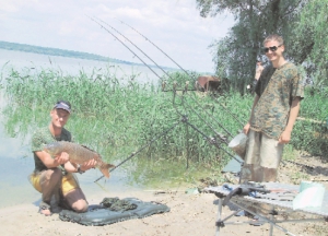 — Четвертий день рибачимо, — каже 24-річний Максим Потомаха зі столиці. — 16 покльовок коропа і 12 витягнув. Найменший — 6 кілограмів, найбільший — 15. Залишили для жарьохи найменшого, бо він не так мулом смердить, інших випустили.