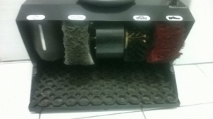 Він коштує майже 3 тис. грн. Такі пристрої купують у готелі, ресторани й офіси. Вмикається автоматично, щойно людина піднесе ногу до датчика. Щітка чистить взуття від пилу та бруду. Кульковим дозатором можна нанести безбарвний крем і відполірувати бавовняною щіткою. Вимикається за 60 с.