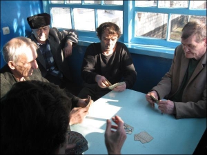 — Нам тут добре, тепло, дають їсти, нічого не робимо, — розтягує кожне слово 68-річний Микола Дем"янчук із села Липки Попільнянського району. Його називають "святий", бо ходить до церкви. — Читаємо книжки, журнали всякі: "Перець", "Барвінок", наприклад. Відмічаємо свята — й державні, й релігійні. Михайлович інколи в церкву пускає...