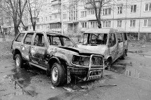 14 машин спалили за два дні у столиці. 20 листопада в районі Оболонь у чотири кинули пляшку із займистою сумішшю. 21-го за 2 год. згоріли три легковики на вул. Миропільській, чотири — на вул. Бойченка, мікроавтобус і позашляховик на бульв. Дарницький у Дніпровському районі.