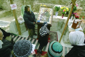 Наглядають за православною святинею два монахи з Чернівецької області. Уранці ченці виносять її, надвечір забирають. Кажуть, ночують в одній кімнаті з образом.