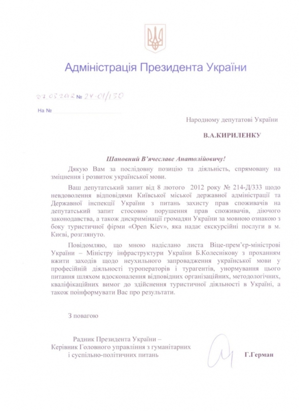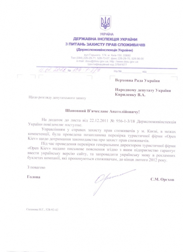 Я звернувся із запитами щодо цієї проблеми до високих чиновників - Попова, Орєхова і Герман, бо вважаю, що наші права як споживачів порушено. Я вже не кажу, що у цьому випадку роль української мови як державної принижена далі нікуди - не фігурує навіть поруч із російською. Отримав послідовно три відписки, які тут і оприлюднюю.