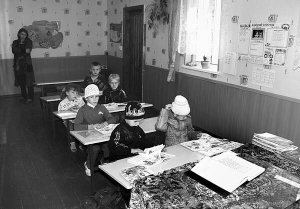 На першу зміну приходять семеро з першого класу і четверо — з третього класу. На другу — по троє учнів другого і четвертого класів. Усього — 17. В селі є газ, але до школи його не дотягнули. У кімнатах прохолодно, тому діти сидять у куртках і шапках.