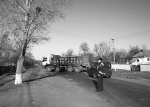 — Центральна дорога й наші хати побудовані на плавуні, — продовжує Іван Михайлович. — Він на глибині п'ять метрів, а в деяких місцях — два метри. При такому русі вантажівок наші хати за два-три місяці поваляться. Колона рухається з інтервалом у 15 метрів. Вага кожної машини 60–70 тонн. За хвилину по такій дорозі проходить 200–250 тонн вантажу на швидкості до 60 кілометрів на годину. А вона розрахована максимум на 38 тонн. Водопровід уже порвався, вода по вулиці тече. А що буде, коли порветься газопровід?