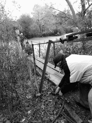 11 жовтня у місті Хмільник відремонтували підвісний міст через річку Південний Буг.