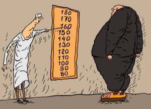 — Це нас потрібно було поважити всіх напередодні, а тепер провести контрольне, — виручає колег Дмитро Білоус із Департаменту охорони здоров'я та курортів Вінницької ОДА. Погоджується на вимірювання. Виходить 125 кг. — О, то я вже десь порушив. Було 117. Почав худнути з минулої весни, тоді 138 кіло мав. Виключив із меню все мучне, солодке. Один день зробив розгрузочним, на яблуках і воді. Хочеться їсти — п'ю сироватку. Мої свати живуть у сільській місцевості, то молоко передають. Дружина відігріває. Овочів, ягід треба більше вживати. Не пропустити яблучний і гарбузовий періоди. Але сама головна дієта — менше їсти.