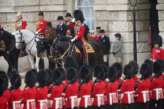 Участь у церемонії беруть 1,5 тис. солдатів і 350 коней. Принц Вільям виступає у ролі полковника ірландської гвардії. Опублікували фото підготовки у Twitter герцога та герцогині Кембриджських.