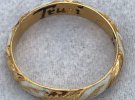 Оглядаючи поле біля Шекспірівського Залу в Ворвіку. На глибині 23 см, металошукач подав сигнал про знахідку. На дні ями, жінка знайшла невелике кільце з червоно-білою емаллю. На внутрішній стороні є напис "Правда не зраджує".