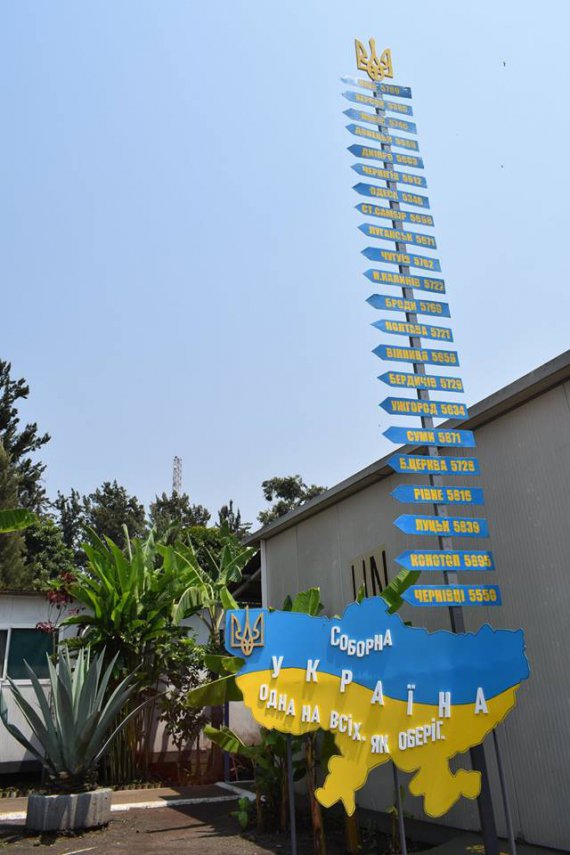 "Аби увіковічити цю знаменну дату (День Соборності – ред.) українські миротворці у таборі, що розташований у місті Гома Демократичної Республіки Конго встановили пам'ятну стелу у вигляді карти України та вказівників з відстанями до рідних міст", - йдеться в повідомленні.