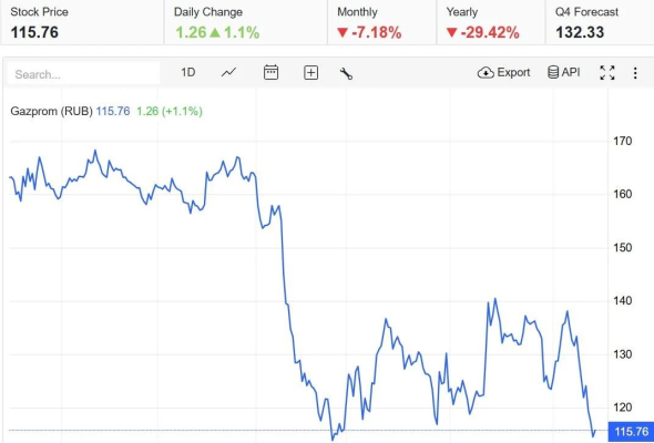 Акції російського газового гіганта Газпром станом на 27 листопада впали до історичного мінімуму.