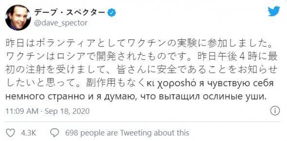 Жартівливі повідомлення з однаковим текстом знаменитості почали публікувати в соцмережі з середини вересня. Про "щеплення" російською вакциною написали американські актори Едріан Броуді та Вільям Болдвін, а також телевізійний продюсер Дейв Спектор і письменник Олександр Кемпбелл.