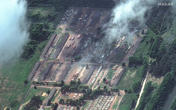 Показали нові супутникові фото бази ПВК "Вагнер" на території Білорусі.