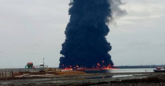 Розливання нафти у даний час досягло 12 -18 кв. км. Причина займання невідома. Отруйні хмари диму становлять небезпеку для навколишнього середовища та майже 700 тис. мешканців міста.