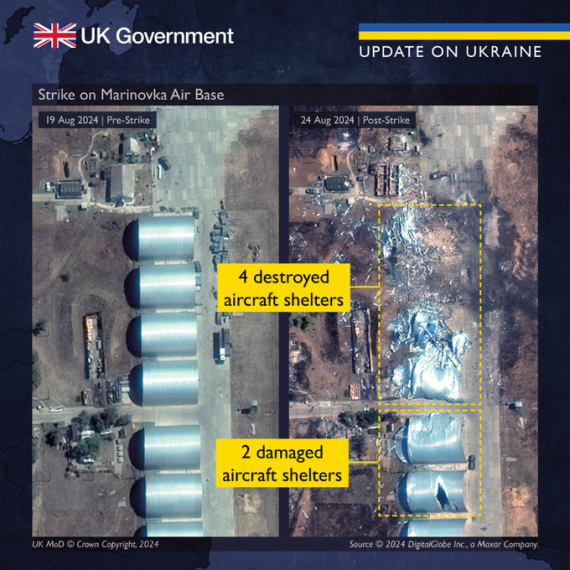 Британська розвідка показала фото авіабази "Маринівка" у Волгоградській області Російської Федерації, після українського удару по цій базі.
