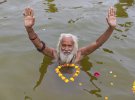 Чоловік, котрий тягав за собою пікап цьогоріч, належить до особливих йогів-аскетів - нага садху. Вони живуть у гімалайських печерах та показуються людям лише під час подібних релігійних фестивалів.