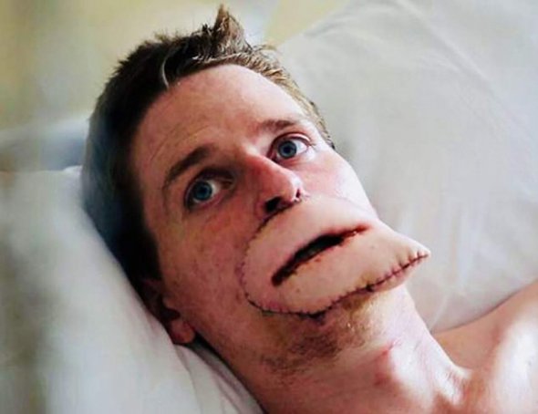 Алекс став першою людиною, кому зняли шкіру з плеча і пересадили її на ділянку рота. Так реконструювали верхню і нижню губу.