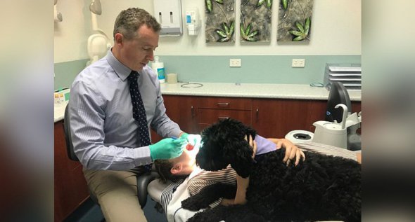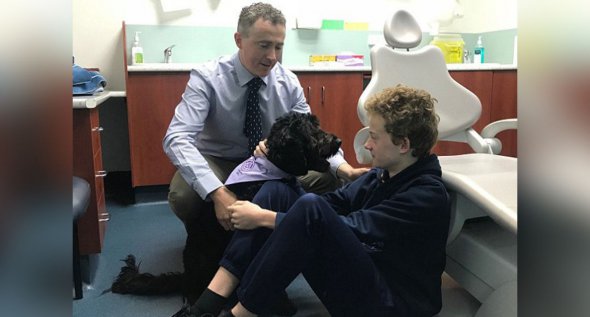 Коміт, трирічний собака породи лабрадудль, став працівником дитячої стоматологічної клініки в Квінсленді, Австралія. Коміт добре заспокоює дітей під час прийому.