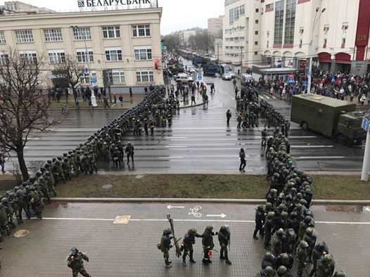 Станом на 14.00 у Мінську правоохоронці перекрили проспект Незалежності з кількох боків. ОМОН зі щитами вишикували кордон і блокують рух протестувальників.