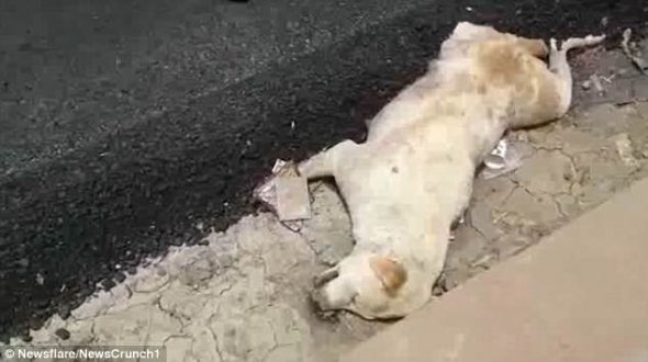 Собаці придавили задні ноги і утрамбували асфальт катком. Коли до працівників звернулися місцеві, ті відмовилися розрити дорогу.