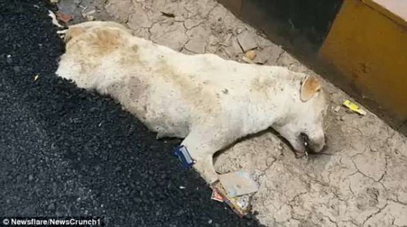 Вони наполовину поховали пса під товстим шаром дорожньої суміші біля культового Тадж Махалу. Невдовзі тварина померла в агонії, повідомляє Daily Mail.