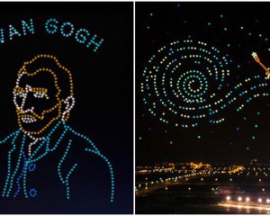 Глядачі змогли побачити в небі такі картини художника, як Зоряна ніч, Тутове дерево, Соняшники і Пшеничне поле з кипарисом.