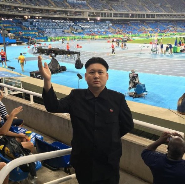 Як повідомляє "Медуза", двійник Кім Чен Ина Говард під час гри у хокей спробував потанцювати перед трибуною. Там сиділи спортсмени з групи підтримки Північної Кореї.
