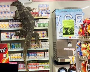 Величезна ящірка-варан залізла в магазин 7-Eleven в тайському місті Накхонпатхоме. Масивна рептилія вилізла з поближнього каналу, перш ніж заповзти в магазин. Про це пише Mirror.