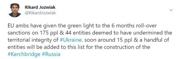 "Незабаром до списку додадуть близько 15 людей і кілька організацій, причетних до будівництва Керченського мосту", - повідомив Йозвяк.
