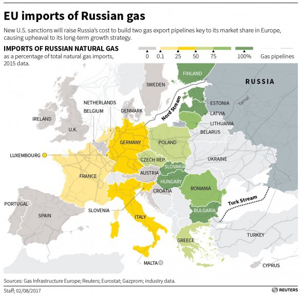 Нові санкції США зроблять складнішим побудову двох газових трубопроводів до Європи. Експерти повідомляють, що російський "Газпром" кинув усі сили і збільшив фінансування, щоб завершити ці енергетичні проекти, навіть без дозволу інших європейських країн.