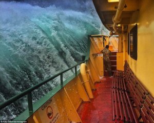 Працівник порому в австралійському Сіднеї Хейг Гілкрайст сфотографував велетенську хвилю, яка вдарила об борт його судна.