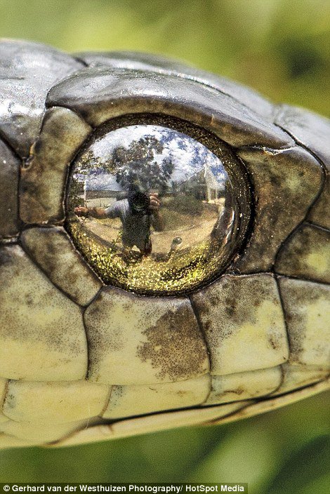 Фотограф Герхард ван дер Вестхейзен, 26 років, з південно-африканського Кейптауна, зробив селфі в оці змії.