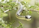 Герхард натрапив на отруйну змію бумсланг у садах заповідника дикої природи Санбони, Південна Африка. Щоб зробити гарні знімки, він взяв змію голими руками і поклав на найближчий кущ. Наблизився до неї на 15 см. За допомогою макрооб'єктива зробив знімок, пише Daily Mail.