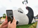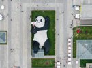 Величезного чорно-білого ведмедя формують 3 млн фарбованих стрижнів з нержавіючої сталі. Панда лежить на окремій галявині. Одну лапу вона заклала за голову, іншою тримає селфі-палицю. Задню лапу панда вмостила на невеличку будівлю, схожу на МАФ.