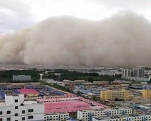 Місто Голмуд на півночі Китаю накрила потужна піщана буря. Стіна пилу висотою 50 м за кілька хвилин покрила все місто.