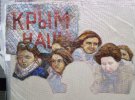 На ще одній мозаїці зображено парад Перемоги 1945 року. Над солдатами - портрет Йосипа Сталіна. Ще на одній із частин мозаїки згадується приєднання Криму. На фрагменті панно зображені кілька жінок, а над ними напис "Крим наш".