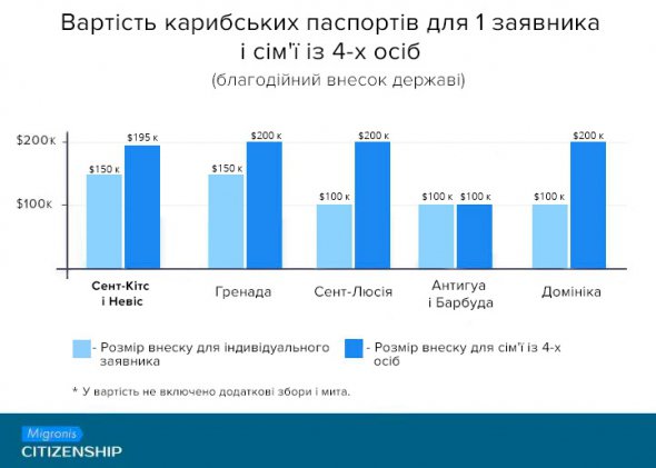 Таким чином, вартість паспорта для індивідуального заявника найбільш приваблива на Антигуа і Барбуді, Домініці і Сент-Люсії, для сім'ї з 4-х осіб — на Антигуа і Барбуді та Сент-Кітсі і Невісі.