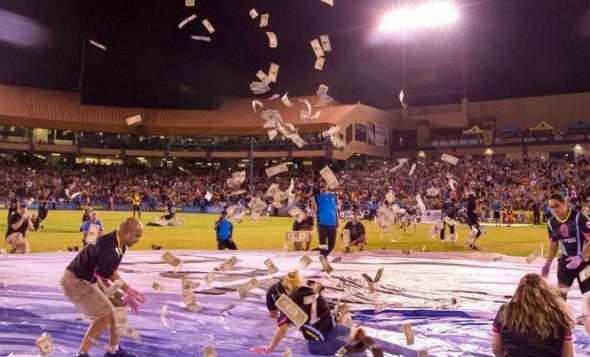 Американський футбольний клуб Лас-Вегас Лайтс розсипав на полі $5 тисяч. Купюри посипались на вболівальників із гелікоптера під час перерви в поєдинку з Лос-Анжелес Гелаксі.