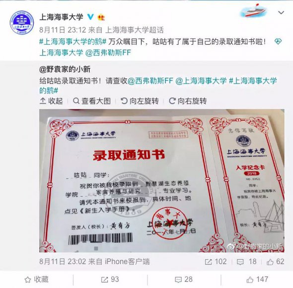 Відповідне прохання жінка залишила у в обліковому записі університету в китайській соціальній мережі Sina Weibo. Там відповіли, що будуть раді взяти до себе птаха. Він житиме на озері разом з іншими гусаками. Після того, як історія набула розголосу, університет видав Гугу сертифікат про зарахування. У ньому птаха називають студентом, повідомляє CGTN.