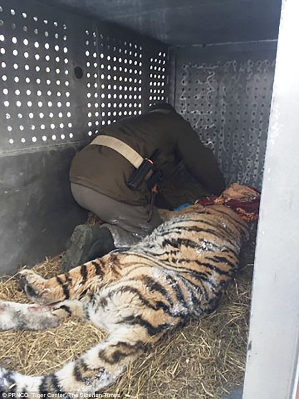 "Тигриця поводилася абсолютно мирно, ніби вона чекала допомоги", - сказав директор Амурського тигрового центру Сергій Арамиль.