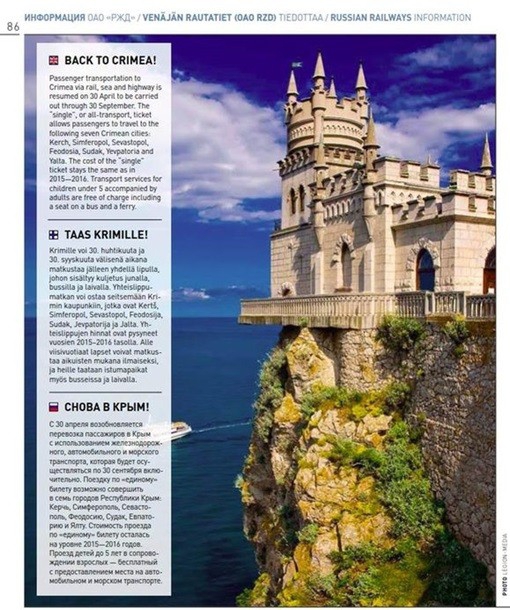 Вилучила з продажу тираж свого журналу фінська державна залізнична компанія VR. Видання надрукувало оголошення про відпочинок в окупованому Криму.