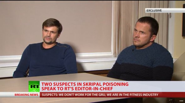 Олександр Петров і Руслан Боширов, яких влада Британії підозрює в отруєнні колишнього офіцера ГРУ Сергія Скрипаля та його доньки, дали інтерв'ю телеканалу RT. Чоловіки нібито самі зателефонували на мобільний головному редактору Маргариті Симоньян. "Вони відмовилися давати інтерв'ю кому-небудь іншому", - повідомила вона.