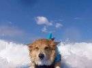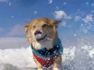 Каліфорнійський коргі Джоджо вправно катається на серфі на прибережних хвилях неподалік американського міста Сан-Дієго.